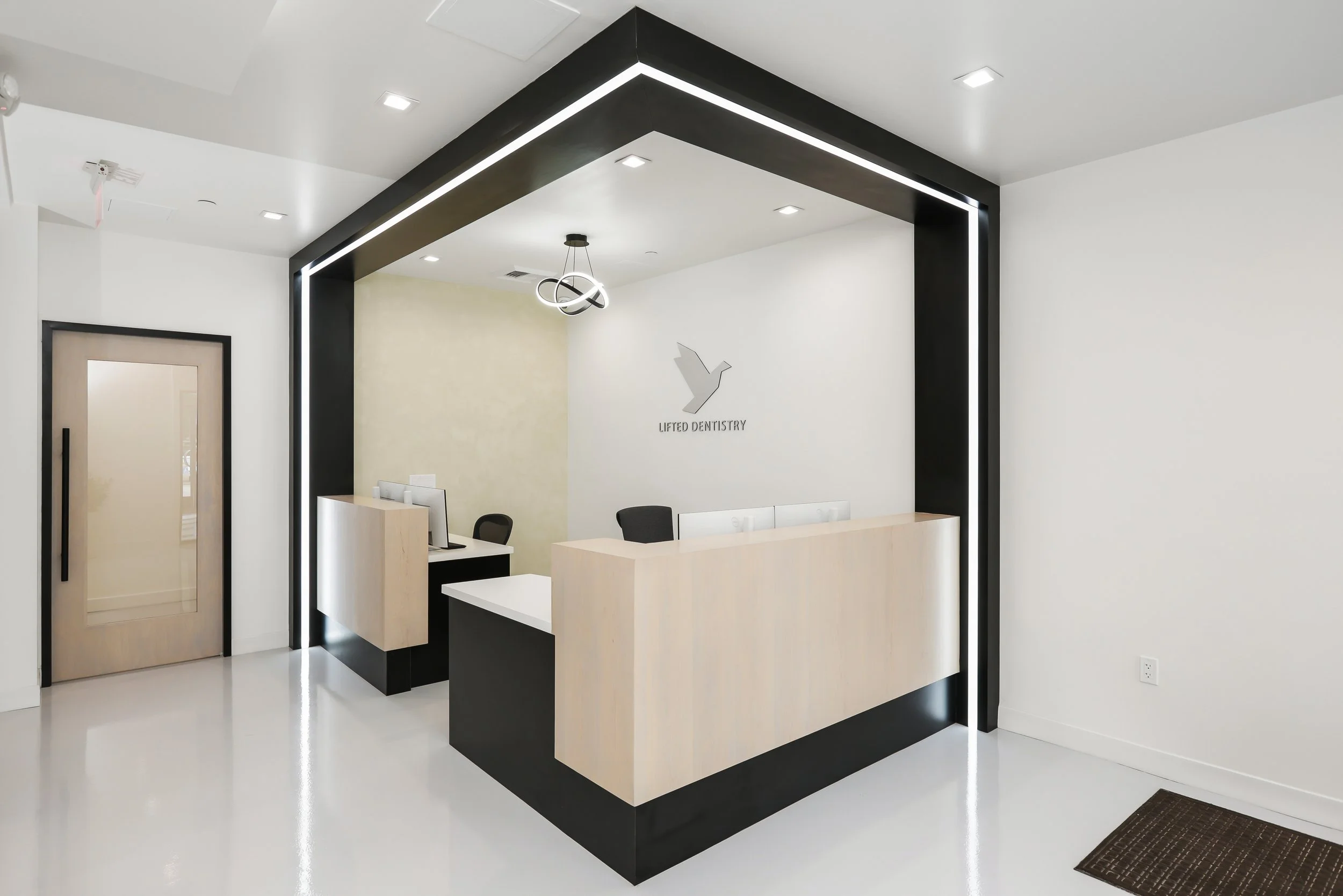Dr. Park set out to open his brand-new practice on a standard budget, he wanted something far from ordinary. Our team delivered a clean, contemporary design with a modern edge - a space that feels fresh, stylish, and completely his own. Think art gallery vibes: sleek architectural details, custom direct and indirect lighting, and natural textures that bring warmth and balance.